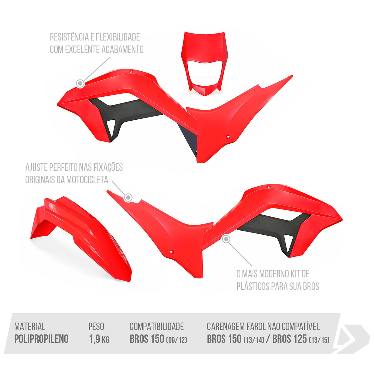 Kit Reestyle moderno y conceptual, así podemos definir los nuevos plásticos compatibles para las motos Bros 150 (09/12). Conservando perfectos encajes, acabado alto brillo, moldeados en polímero flexible y resistente.